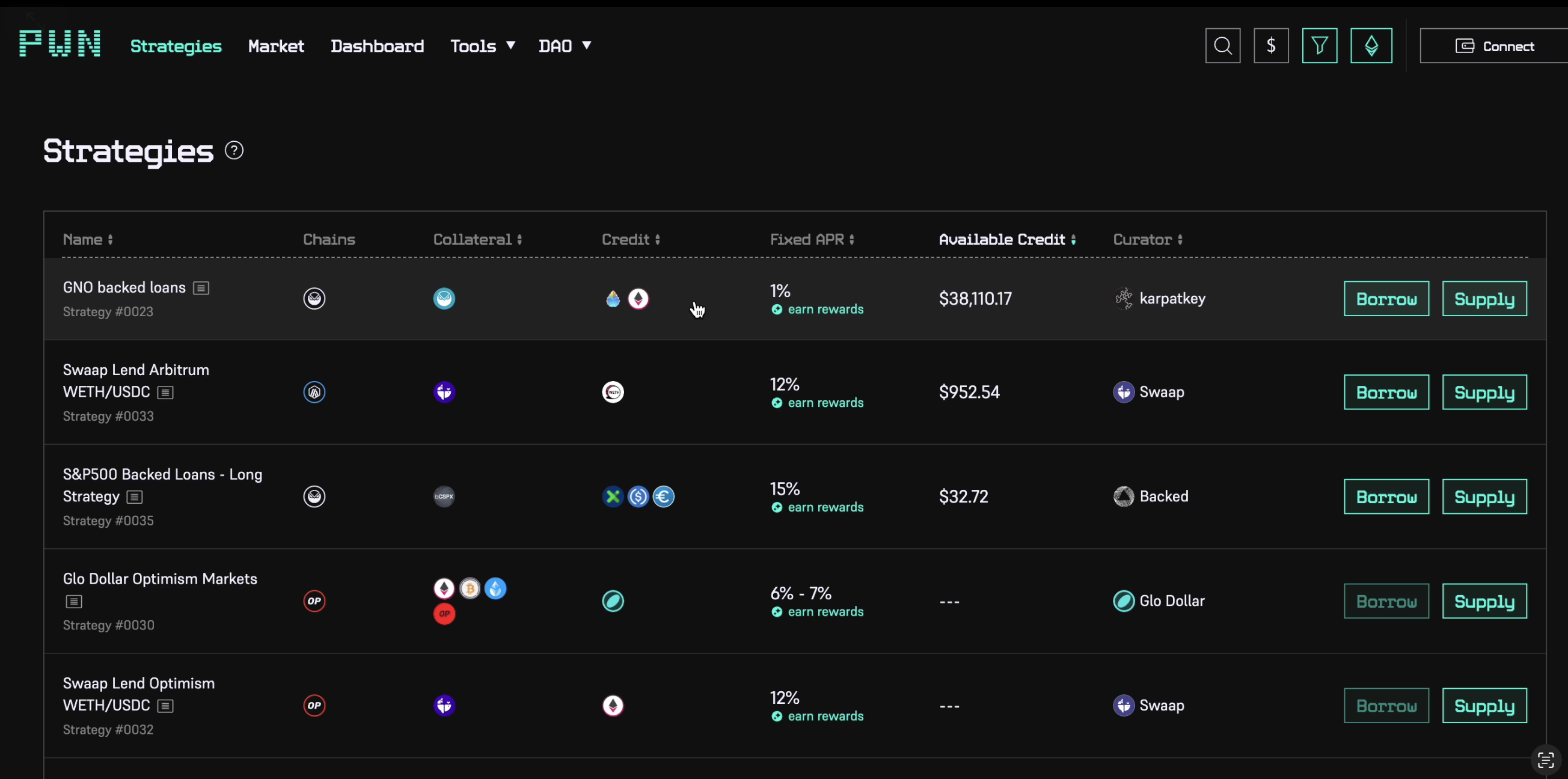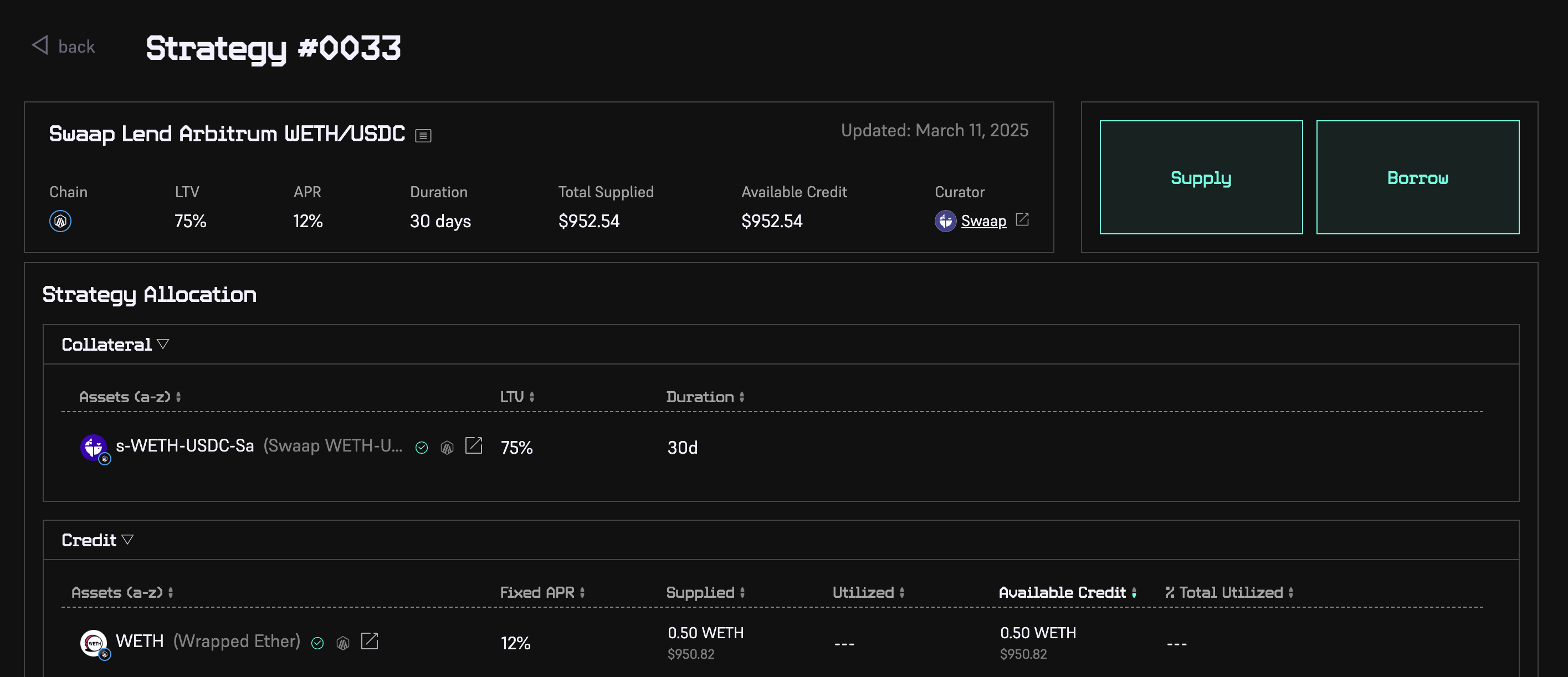 Each strategy page will display a comprehensive view of lending terms, along with a complete list of eligible collateral and credit assets.